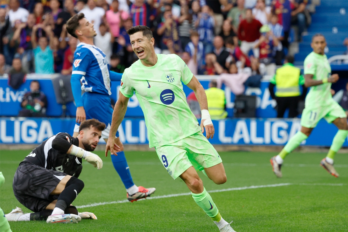 واصل المهاجم البولندي روبرت ليفاندوفسكي تألقه بتسجيله ثلاثية الفوز الثامن لبرشلونة من أصل تسع مباريات في الدوري الإسباني لكرة القدم هذا الموسم، وجاء على حساب مضيفه ألافيس 3 - 0 الأحد.
