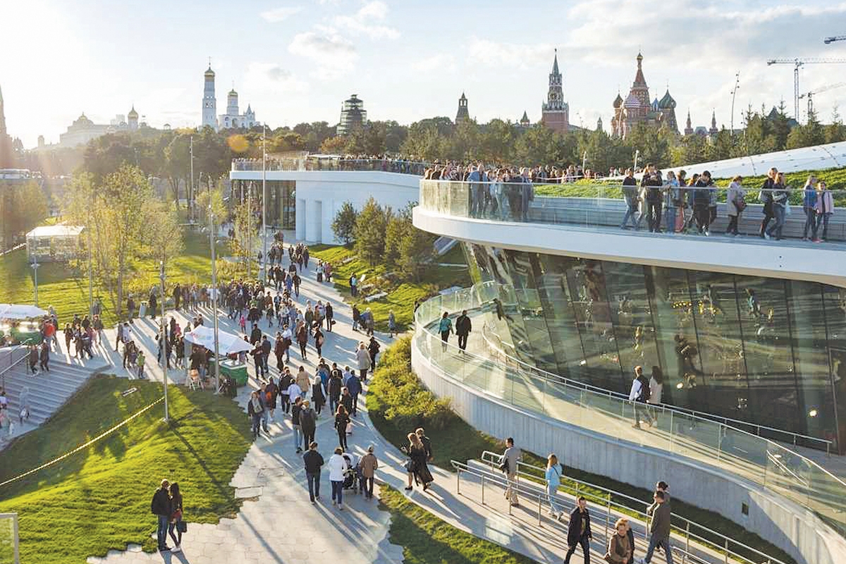 وعلى مقربة من الساحة الحمراء والكرملين، كان الاتجاه إلى حديقة زارياديه التي تتميز بموقعها الفريد في المركز التاريخي لموسكو وتوفر إطلالات ساحرة على المدينة ونهر موسكفا.