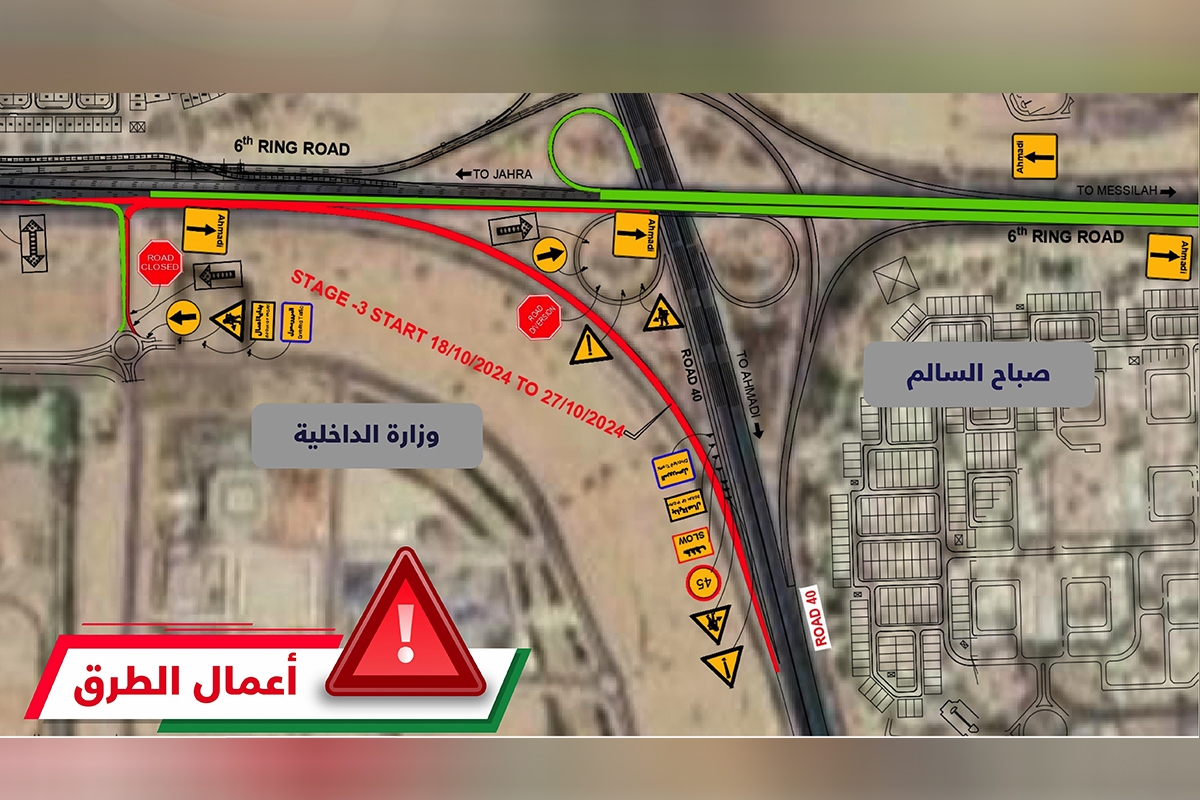 وأفادت بأن الطريق البديل في هذه الحالة هو طريق الدائري السادس وصولاً إلى تقاطع شارع الغوص مع منطقة مشرف والدخول باتجاه مدينة الجهراء وصولاً إلى مخرج طريق الملك فهد.