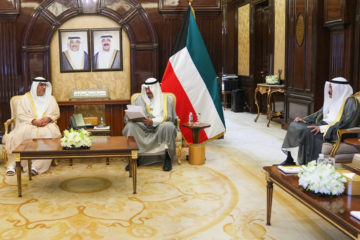 استقبل سمو الشيخ أحمد العبدالله رئيس مجلس الوزراء، في قصر بيان اليوم، سفير دولة الإمارات العربية المتحدة لدى دولة الكويت د. مطر النيادي، حيث سلم سموه رسالة خطية من نائب رئيس الدولة رئيس مجلس الوزراء حاكم دبي الشيخ محمد بن راشد آل مكتوم تتضمن دعوة سموه لحضور القمة العالمية للحكومات المقرر عقدها بالإمارات في فبراير المقبل.