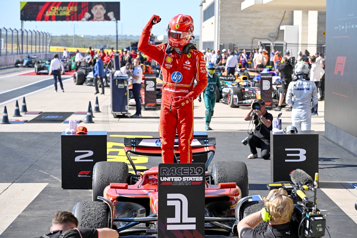 حقق شارل لوكلير من موناكو انتصاره الثالث للموسم، ومنح مع زميله الإسباني كارلوس ساينس فريقهما فيراري الثنائية، فيما تفوق سائق ريد بول الهولندي ماكس فيرستابن وبقرار من المراقبين على سائق ماكلارين البريطاني لاندو نوريس في صراعهما على الصدارة الأحد في جائزة الولايات المتحدة، الجولة الـ 19 من بطولة العالم للفورمولا واحد.