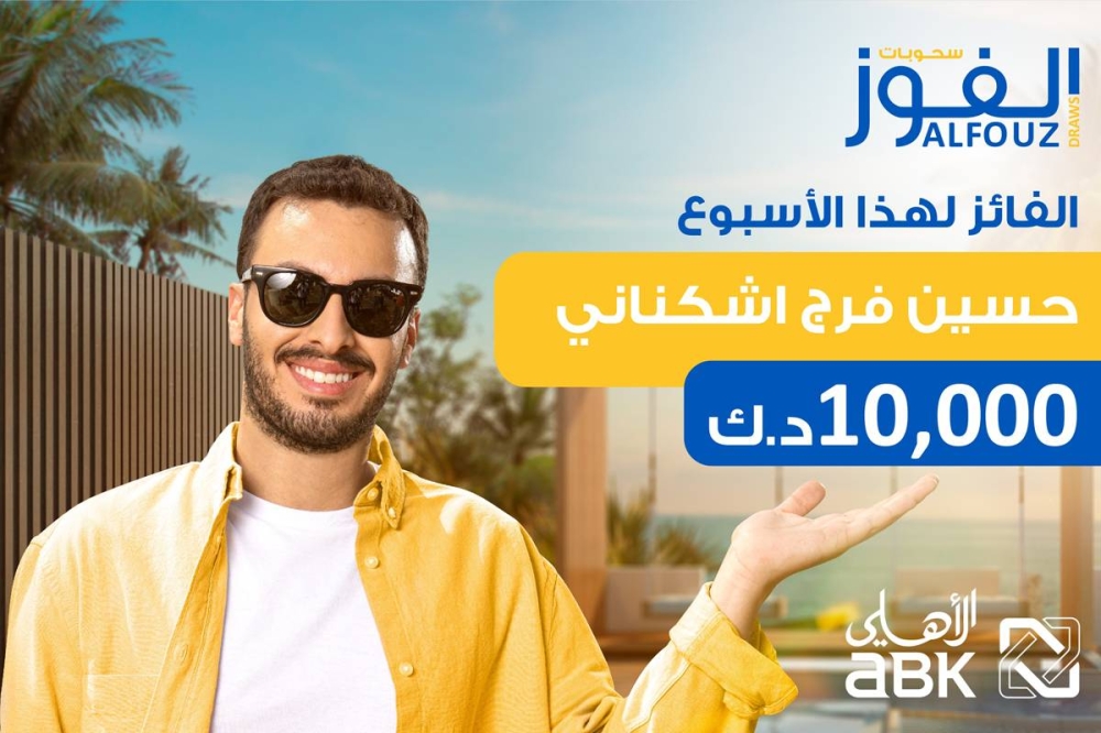 أعلن البنك الأهلي الكويتي فوز حسين فرج أشكناني في السحب الأسبوعي لحساب «الفوز» للجوائز، بجائزة نقدية قدرها 10000 دينار، والذي أقيم تحت إشراف وزارة التجارة والصناعة، وتم الإعلان عن اسم الفائز أمس.