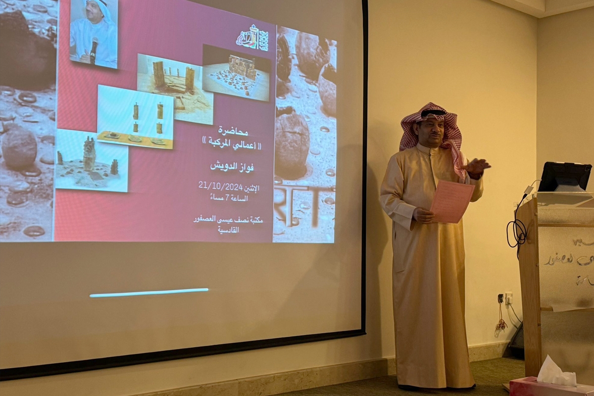 قدَّم الخزاف فواز الدويش محاضرة بعنوان «أعمالي المركبة» في مكتبة نصف عيسى العصفور بمنطقة القادسية، التي تضمنت عرضاً مرئياً عن أبرز أعماله بهذا الأسلوب.