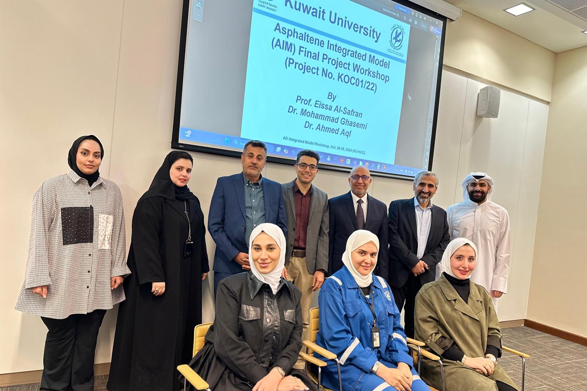 نظمت جامعة الكويت ورشة عمل لمشروع بحثي مشترك مع شركة نفط الكويت للباحث الأستاذ الدكتور عيسى الصفران من قسم هندسة البترول في كلية الهندسة بجامعة الكويت تحت عنوان: «Asphaltene Integrated Model (AIM™) Final Project Workshop» مؤخرا في الكلية، لعرض النتائج النهائية التي تم التوصل إليها بالمشروع، وتدريب موظفي شركة نفط الكويت على نموذج المحاكاة الذي تم تصميمه.