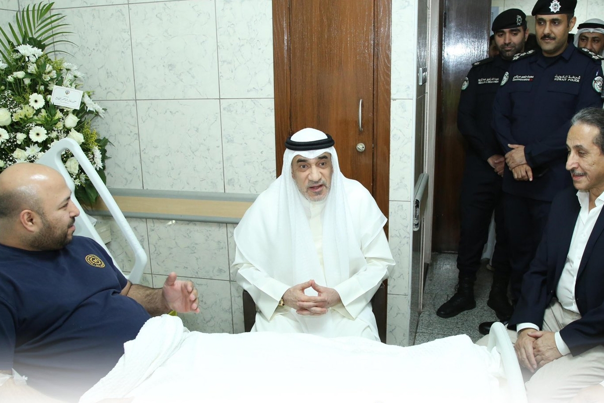 وأوضحت الإدارة العامة للعلاقات والإعلام الأمني بالوزارة، في بيان صحافي، أمس، أن الوزير اليوسف عاد الملازم أول بدر سعد المصاب بالمستشفى إثر تعرضه لعملية دهس بمنطقة الصباحية أثناء تأدية مهام عمله، وأشاد خلال الزيارة بجهود رجال الأمن في ضبط المستهترين والمخالفين للقانون، والحفاظ على سلامة وأمن الجميع.