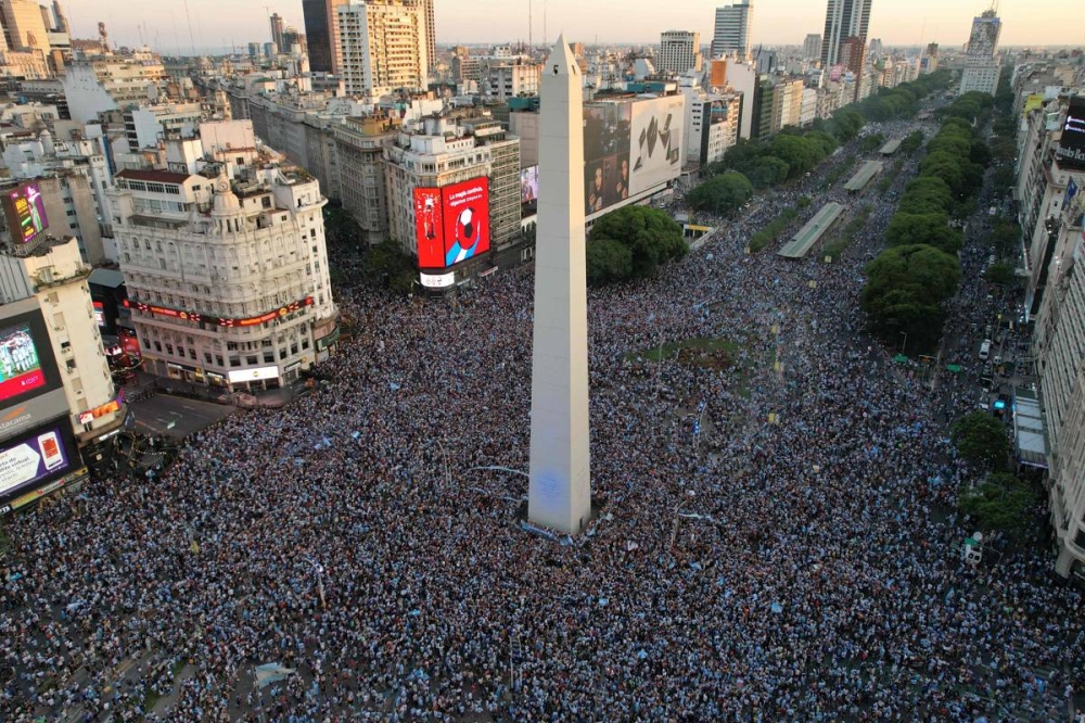 ومع صافرة النهاية، شهدت شوارع بوينس آيرس ماراثون للوصول إلى المسلة الشهيرة ومشاركة حلم فوز الألبيسيليستي بكأس العالم للمرة الثالثة في تاريخه.