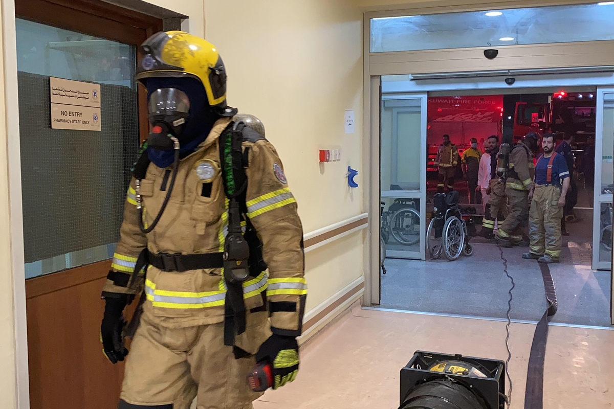 واحترازياً، تم نقل 29 حالة من موقع الحريق إلى قسم الأطفال بمستشفى جابر الأحمد.