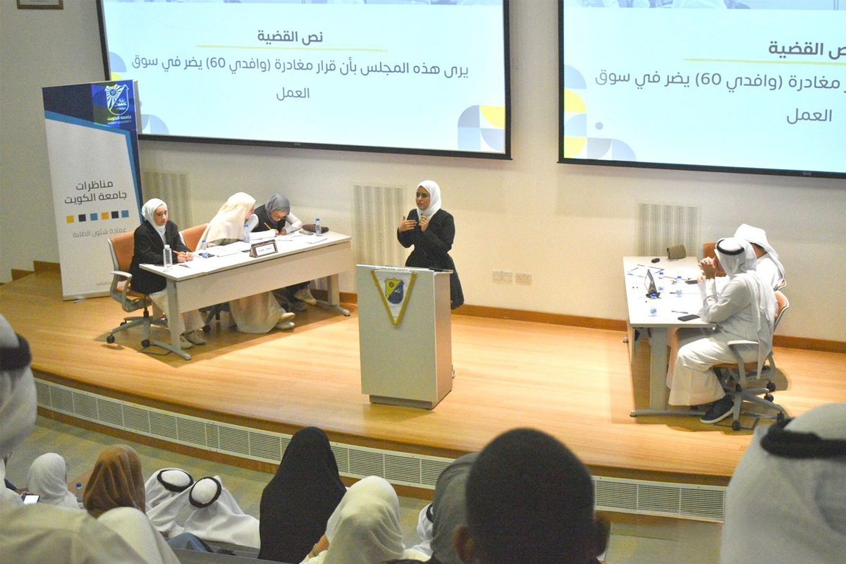 أحرز فريق كلية الحقوق لقب بطولة دوري مناظرات كليات جامعة الكويت باللغة العربية بنسختها العاشرة للعام الجامعي 2024/2025، بعد فوزه على فريق كلية العلوم الطبية المساعدة في المنافسات النهائية التي كانت برعاية مدير الجامعة بالانابة د. أسامة السعيد على المسرح الروماني، علماً أن موضوع المناظرة كان حول «قرار مغادرة وافدي الـ 60 عاماً ومدى إضراره بسوق العمل».