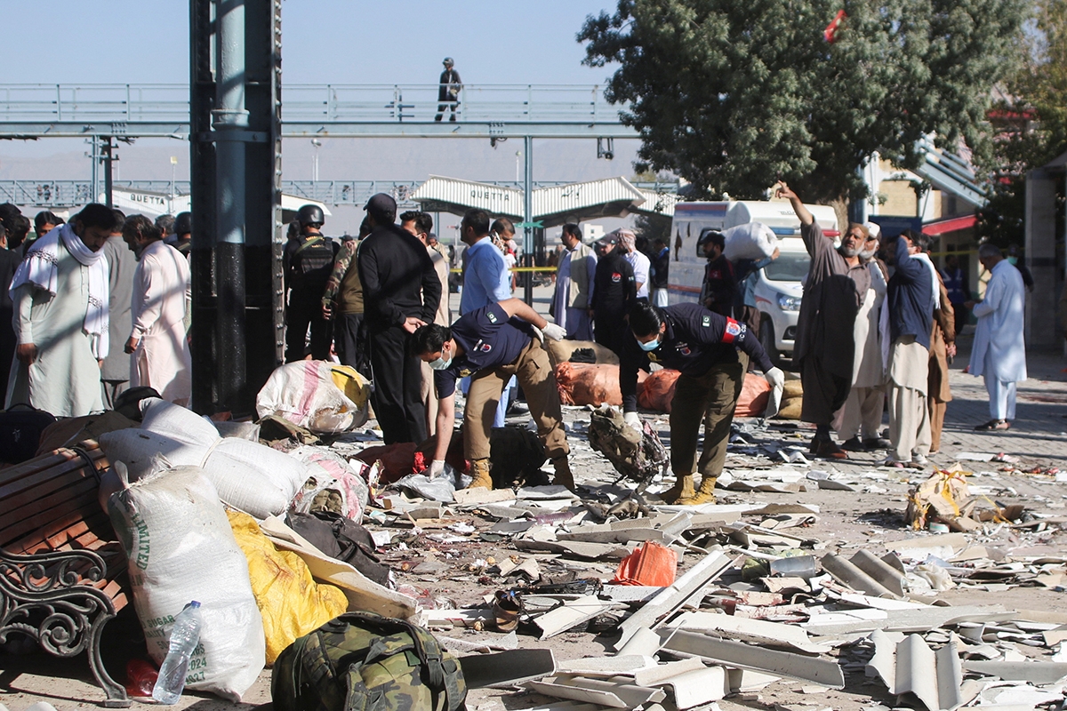 قتل 26 شخصا، بينهم 14 جنديا، جراء تفجير تبناه انفصاليون من البلوش في محطة القطارات الرئيسية في إقليم بلوشستان بجنوب غرب باكستان فيما كانت تغص بالركاب اليوم.