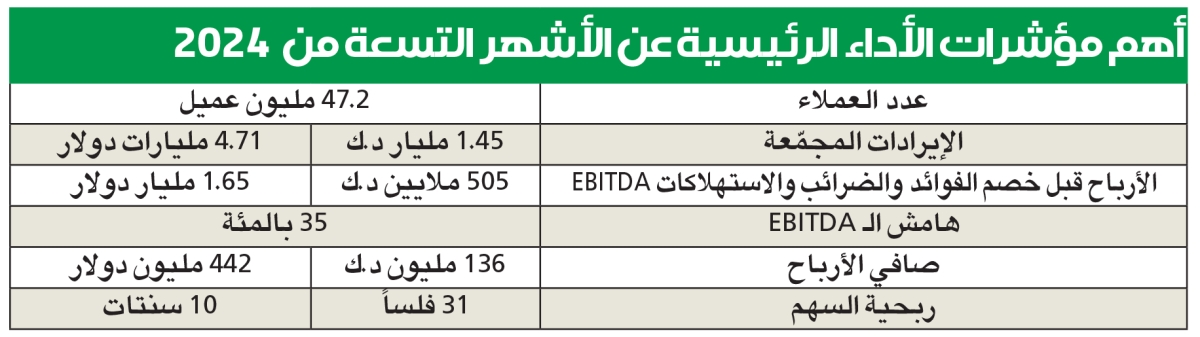ولفت إلى أن «نسب النمو لعملياتنا تأثرت بالانخفاض الهائل لقيمة العملة في السودان عن هذه الفترة، إذ تأثرت مؤشرات الأداء المالية الرئيسية (انخفضت قيمة العملة من 638 جنيها سودانيا/دولار في سبتمبر 2023 إلى 1.982 جنيها سودانيا/دولار بنهاية سبتمبر 2024)»، مبينا أن عمليات المجموعة ومع ضغط انخفاض العملة، والتحديات التشغيلية، نجحت في رفع الإيرادات المجمعة عن فترة الأشهر التسعة لتصل إلى 1.45 مليار دينار (4.7 مليارات دولار).