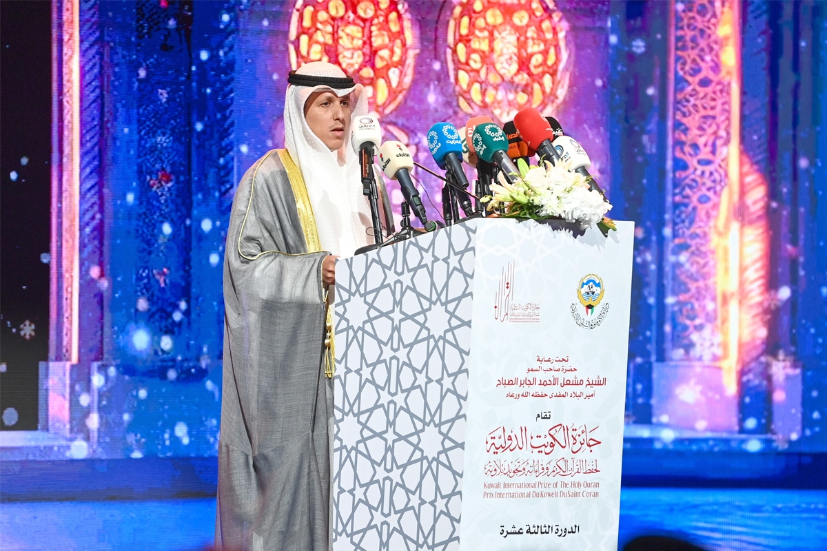 جاء ذلك في كلمة الوزير خلال حفل افتتاح الدورة الثالثة عشرة لـ «جائزة الكويت الدولية لحفظ القرآن الكريم وقراءته وتجويد تلاوته» المقامة برعاية صاحب السمو أمير البلاد، الشيخ مشعل الأحمد.