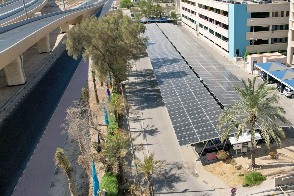 الشركة استبدلت المظلات الخارجية في مقرها الرئيسي بألواح الطاقة الشمسية