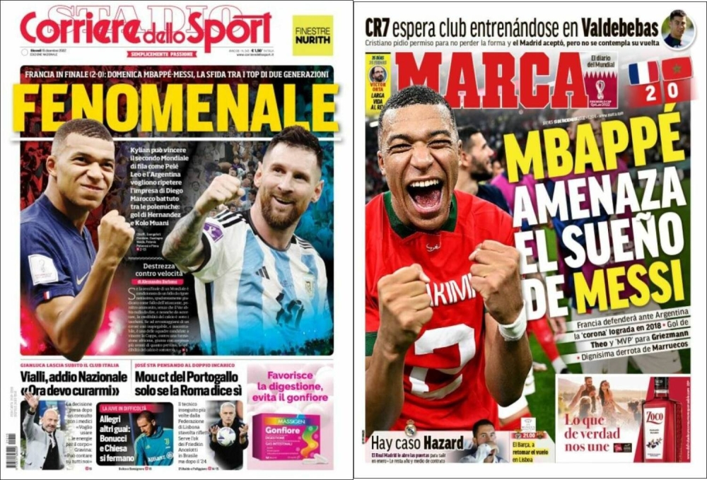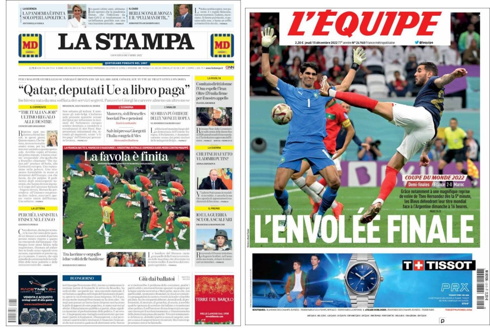 في المقابل، عنونت صحيفة لاغازيتا ديللو سبورت الإيطالية على موقعها الإلكتروني الرسمي: «فرنسا في النهائي لكن التصفيق والتحية يذهبان للمغرب»، مشيرة إلى أن منتخبي فرنسا والأرجنتين سيبحثان عن اللقب الثالث في كأس العالم، لكن أفضل قصة في المونديال كتبها المنتخب الإفريقي.
