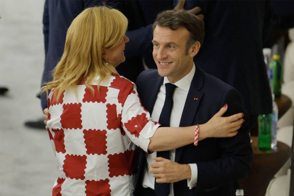 وفي تصريح أدلى به أمام عدد قليل من الصحافيين في المنطقة المختلطة بملعب الخور، أشاد الرئيس الفرنسي بمنتخب بلاده، خصوصاً أنه «مزيج من عدة أجيال»، وكذلك بالمدرب ديدييه ديشان.
