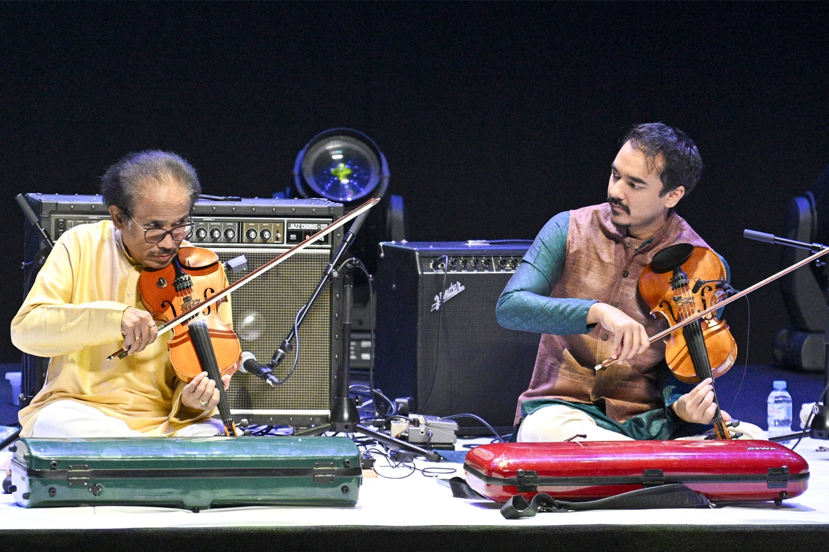 قدّم العازفان الأب والابن، د. ل. سوبرامانيام، وأمبي سوبرامانيام، مقطوعات موسيقية نالت استحسان الحضور في مركز جابر الثقافي.