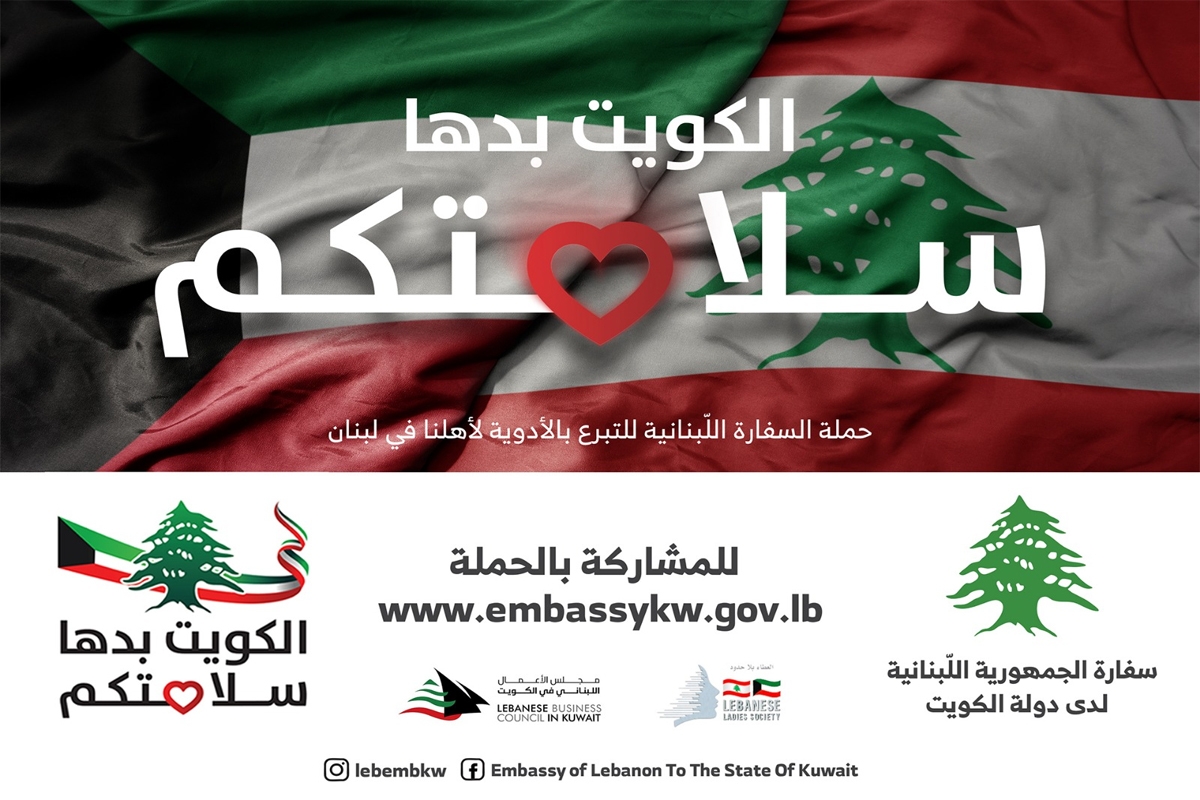 أعلنت السفارة اللبنانية لدى البلاد إطلاق حملة بالتنسيق مع الجهات الرسمية في الكويت، تحت شعار «الكويت بدها سلامتكم»، للتبرع بالأدوية والمستلزمات الخاصة بالأطفال والنساء.