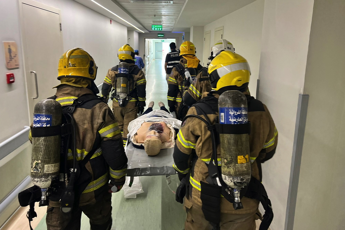 وقالت إدارة العلاقات العامة والإعلام في «الإطفاء» إن سيناريو التمرين تمثل في اندلاع حريق بأحد الأجنحة مع وجود مصابين ومرضى محشورين جراء تصاعد الدخان، مشيرة إلى أن رجال الإطفاء، نفذوا فورا عملية إخلاء للمستشفى وإنقاذ المصابين، والسيطرة على الحريق الافتراضي.
