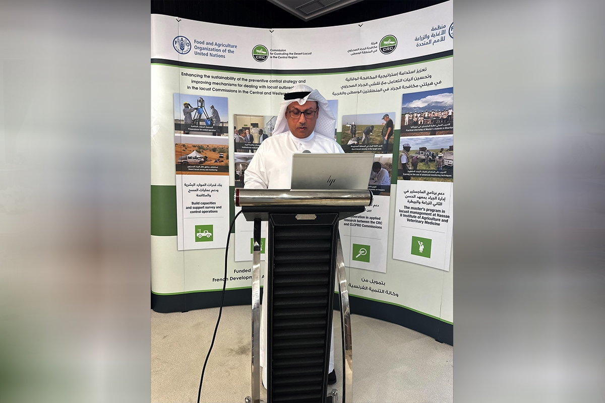 وأضاف العلوي أن الجراد الصحراوي ليس مجرد حشرة زراعية فحسب بل هو تحدٍ عابر للحدود قادر على التسبب بخسائر فادحة تفوق إمكانات بعض الدول، موضحاً أن التعاون الإقليمي ضرورة خصوصاً أن المنطقة الوسطى تُعتبر من أهم مناطق تكاثر الجراد إن لم تكن منبعاً للجراد الصحراوي.