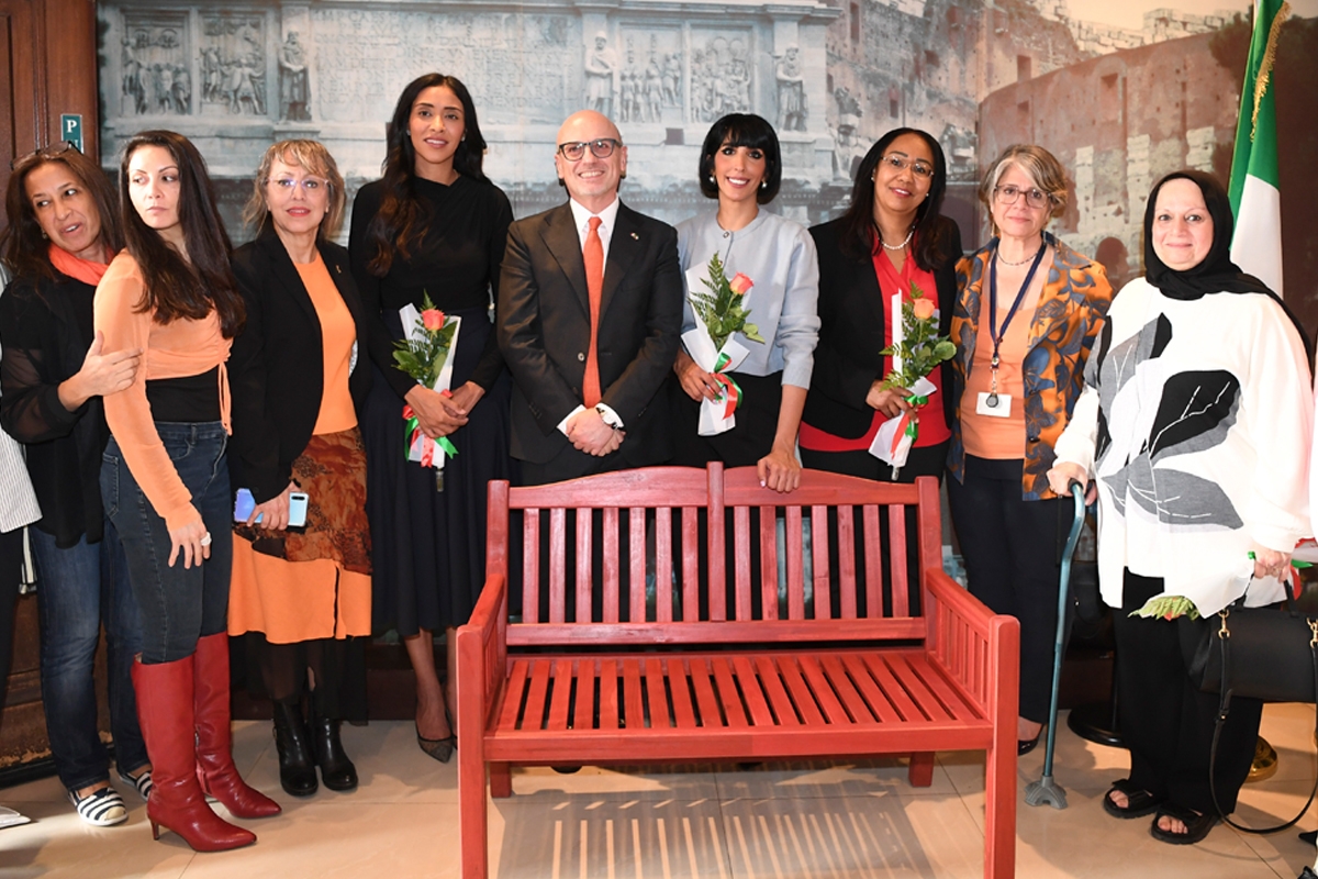 السفارة الإيطالية تدشّن «المقعد الأحمر» في «يوم القضاء على العنف ضد المرأة»