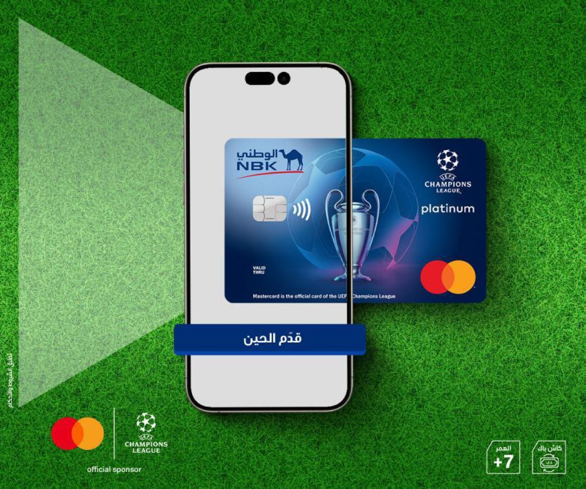 كما أطلق البنك بطاقة UEFA CHAMPIONS LEAGUE PLATINUM MASTERCARD المسبقة الدفع من الوطني المجددة، والتي تعد التطبيق الأول من نوعه لمفهوم الربح المزدوج في الكويت، عبر ما تمنحه لحامليها من ميزات ومكافآت حصرية.