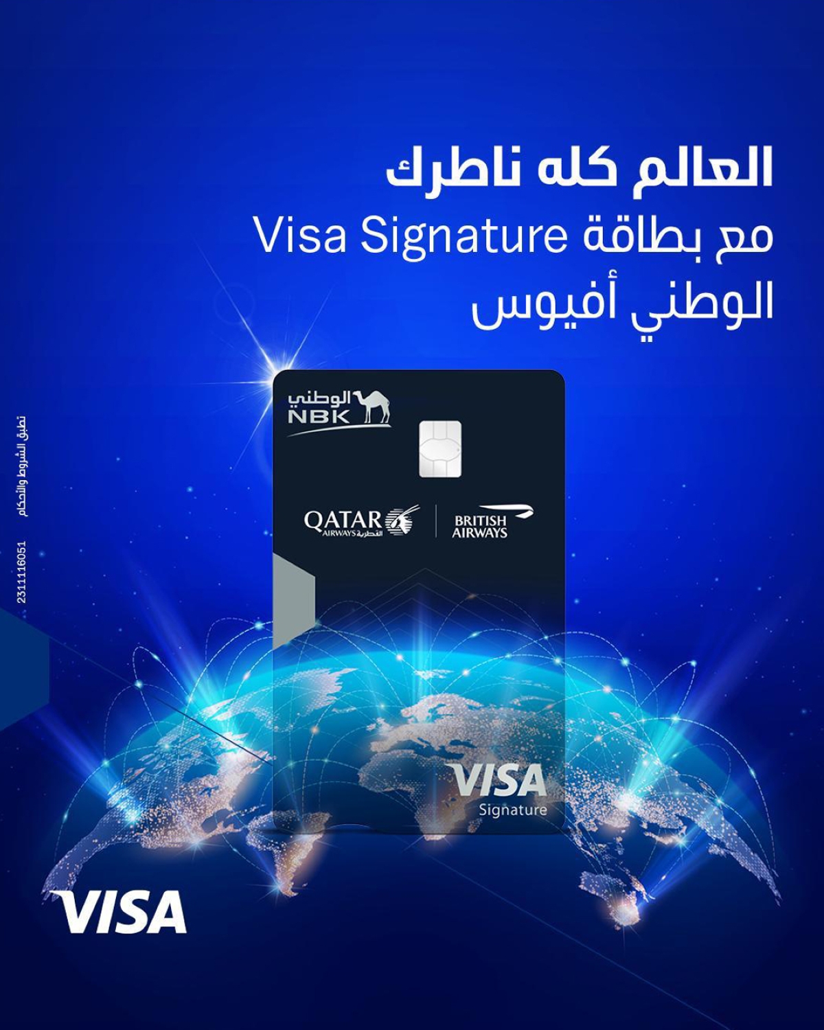 وتضمنت هذه البطاقات بطاقة Visa Signature الوطني أفيوس المسبقة الدفع، بالتعاون مع الخطوط الجوية القطرية والبريطانية، والتي تعد الأولى من نوعها في منطقة الشرق الأوسط وشمال إفريقيا، إضافة إلى بطاقة 247 كاش باك Visa Platinum الوطني المسبقة الدفع الجديدة في السوق الكويتي، التي تمنح العملاء استرداداً نقدياً يصل إلى 24 بالمئة على مشترياتهم اليومية.