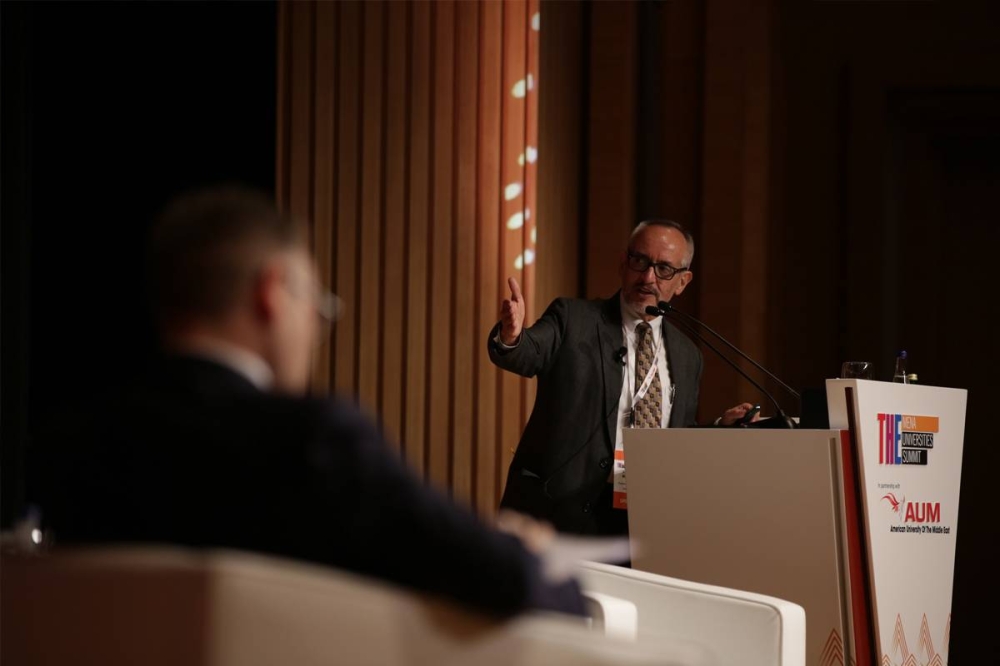 وأضاف: «هناك موضوعان محوريان يجب أن يتم الانتباه لهما في المنطقة. الموضوع الأول هو وجود عدد لا يُستهان به من المتسربين من منظومة التعليم العالي. والموضوع الثاني هو أن لدينا مشكلة في عدد المتعلمين الذين لا يستكملون تعليمهم في الزمن المحدد لذلك. وبالطبع كِلا الأمرين يعتبران من الأمور التي تعكس عدم الفاعلية في المنظومة، والتي يجب أن نكون قادرين على معالجتها لكي نستطيع توفير المزيد من الفرص لعدد أكبر من المستفيدين، حتى يتوفر لهم فرصة تلقي تعليمهم. والسؤال الأهم هو: ما الذي يتعلمه طلابنا. نحن بحاجة إلى أن ندرك الحقيقة بأن مؤسسات التعليم العالي على مستوى العالم يميلون إلى فصل أو تحليل المعرفة، بطريقة لا تعكس بشكلٍ حقيقي الواقع الراهن. وإذا لم نجد طرق لكي يصبح هذا التعليم ذا صلة وأهمية - كما هو اللاعب»ميسي«بالنسبة لكرة القدم - فنحن نعد طلابنا من أجل واقع غير موجود».