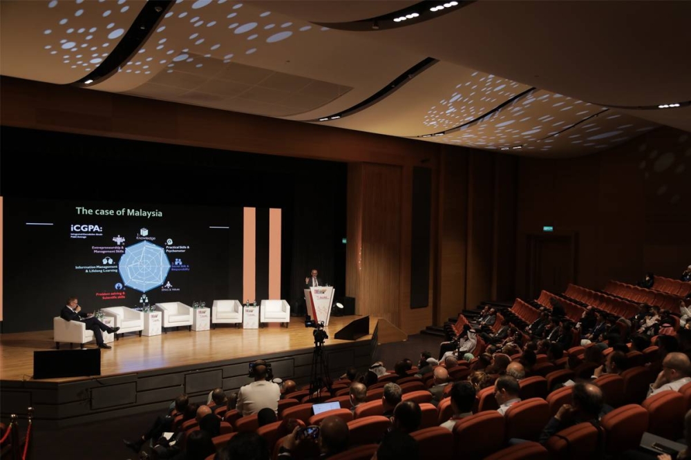 واسترسل في حديثه قائلًا: «رابعًا، إن التحدي الذي نجد فيه فرص كبيرة للغاية هو تحقيق التوازن بين القطاعين العام والخاص في مجالات التعليم العالي. وقد شكّل ذلك تحديًا في بعض الدول مقارنًة بغيرها. كما شهدنا في المنطقة أن هناك بعض الدول التي استطاعت أن تحقق قدرًا كبيرًا من النجاح في التعامل مع هذا الأمر لخلق نظام أكثر انسجامًا بما يشمل القطاعين العام والخاص في مجال التعليم العالي. ولدينا الكثير لنتعلمه من هذه التجارب كوسيلة لزيادة تأثير التعليم العالي».