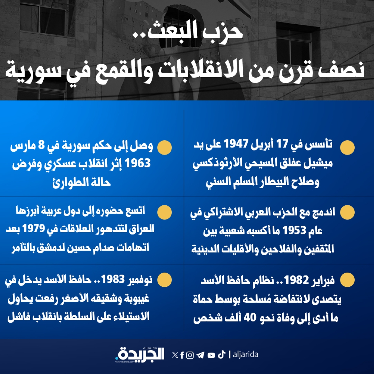 «البعث».. نصف قرن من الانقلابات والتظاهرات والقمع في سورية
