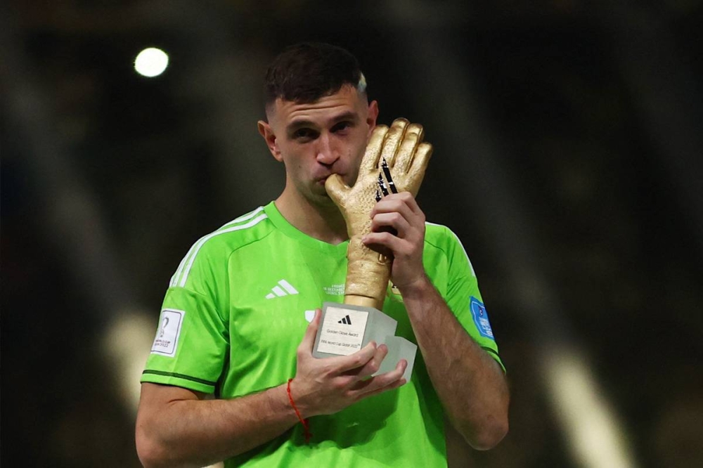 | فاز الحارس الأرجنتيني إيميليانو مارتينيز بجائزة أفضل حارس مرمى في المونديال بفضل تصدياته المبهرة والتي قادت بلاده لمنصة التتويج. وتصدى مارتينيز لفرصة خطيرة جداً في الشوط الإضافي الثاني، ليمنع هدفا مؤكدا كادت أن تفوز به فرنسا باللقب، كما تصدى لضربة جزاء نفذها كومان في ضربات الترجيح، ليفوز المنتخب الأرجنتيني باللقب للمرة الثالثة في تاريخه. |