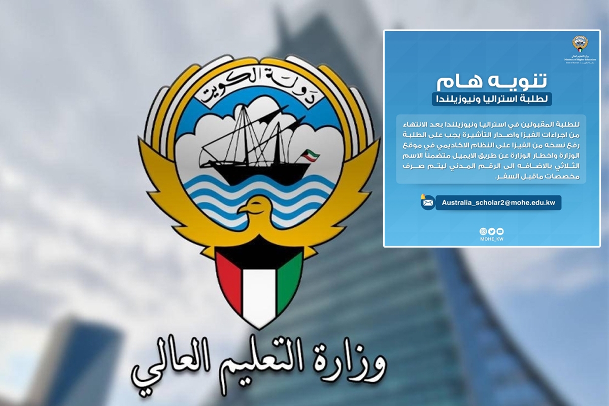 طالبت وزارة التعليم العالي الطلبة المقبولين في أستراليا ونيوزيلندا بعد الانتهاء من إجراءات الفيزا وإصدار التأشيرة رفع نسخة من الفيزا على النظام الأكاديمي في موقع الوزارة وإخطار الوزارة عن طريق الإيميل متضمناً الاسم الثلاثي بالإضافة إلى الرقم المدني ليتم صرف مخصصات ما قبل السفر.