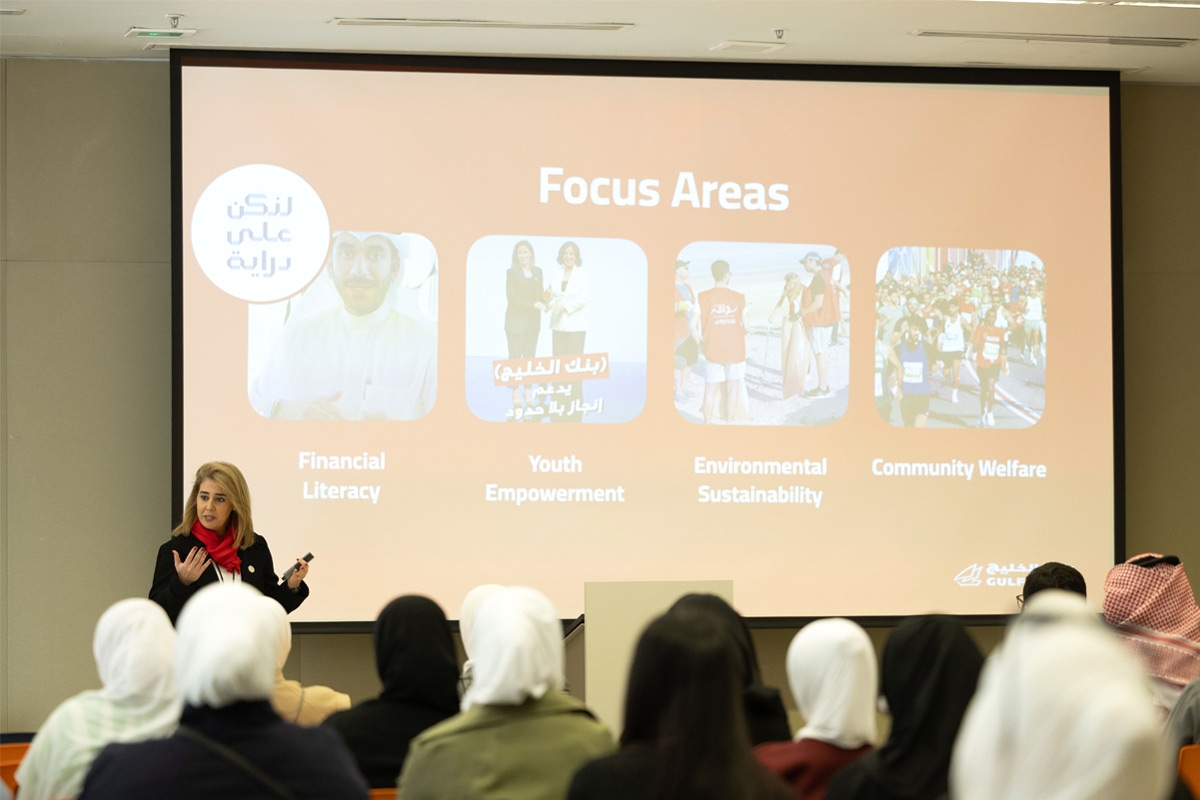 في إطار مساعيه المتواصلة لتعزيز التفاعل مع المجتمع الأكاديمي، حاضرت رئيسة التسويق في بنك الخليج نجلاء العيسى، في ندوة نظمتها جامعة الكويت لطلاب كلية العلوم الإدارية، حول أهمية المسؤولية الاجتماعية للشركات ودورها الفاعل في تطوير المجتمعات.