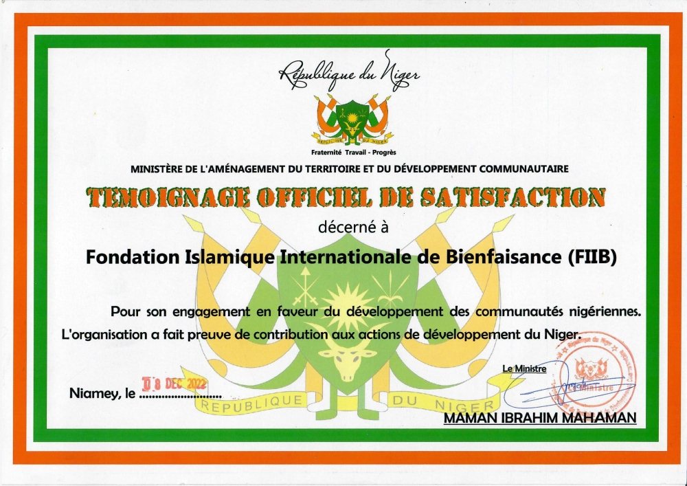 كرمت حكومة دولة النيجر مكتب الهيئة الخيرية الإسلامية العالمية الميداني في النيجر، للجهود التي تبذلها الهيئة في مجال التنمية المجتمعية ومكافحة الفقر.