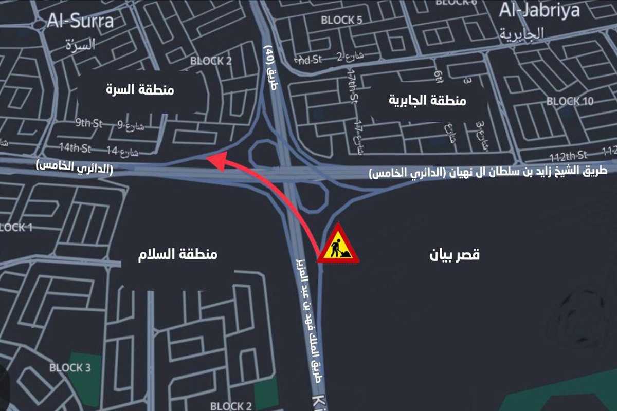 إغلاق مؤقت لمخرج «الملك فهد» إلى «الدائري الخامس» باتجاه الجهراء