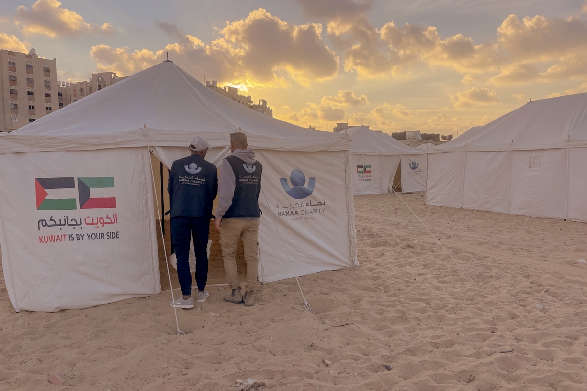 «نماء» تفتتح مخيم إيواء لنازحي غزة