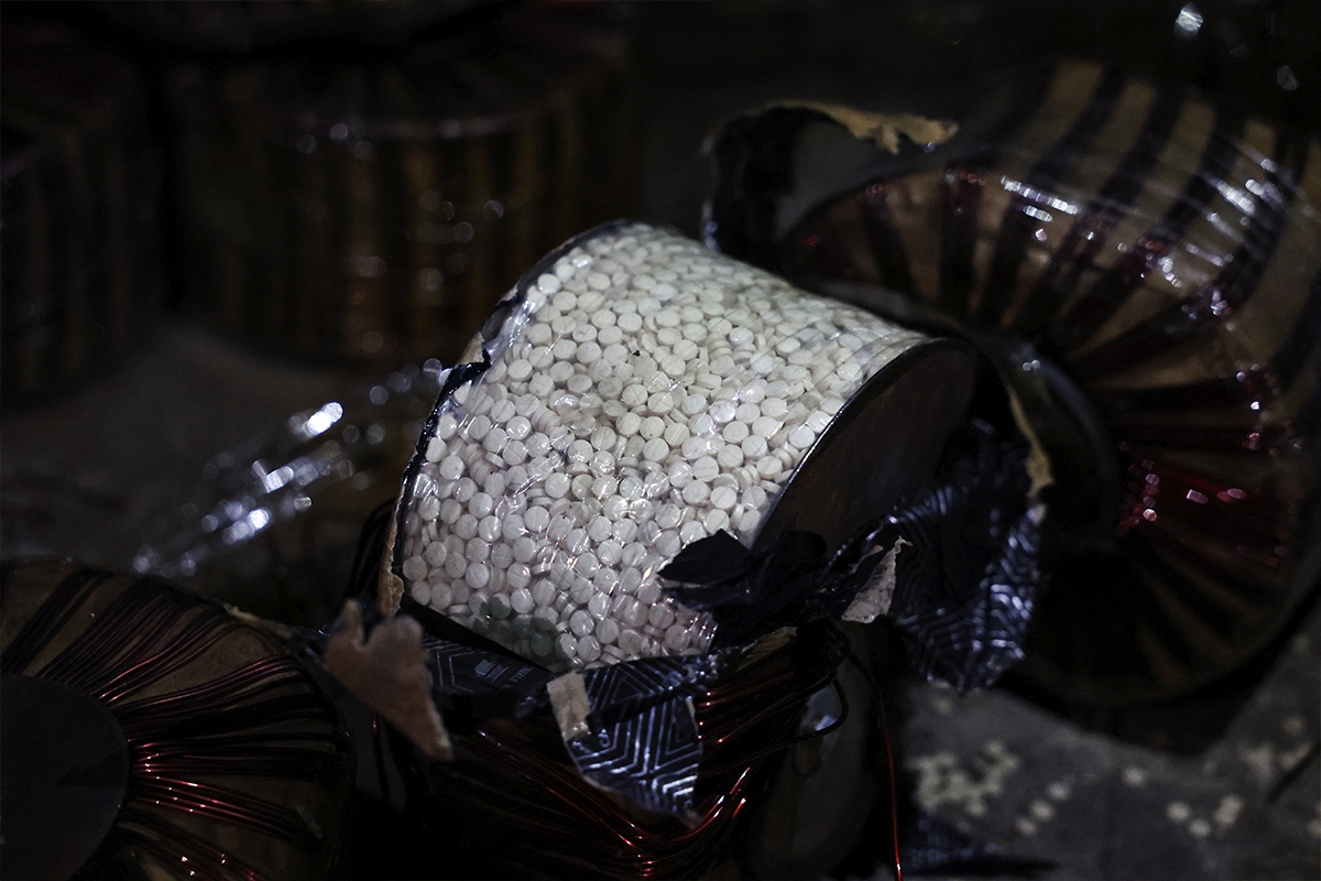 وسمح مقاتلو هيئة تحرير الشام الأربعاء لوكالة فرانس برس بالدخول إلى مستودع في مقلع على مشارف دمشق، حيث تم إخفاء حبوب الكبتاغون داخل مكونات كهربائية للتصدير.