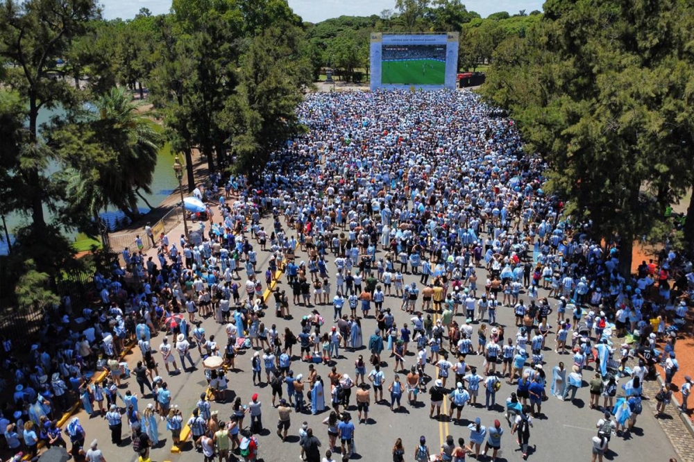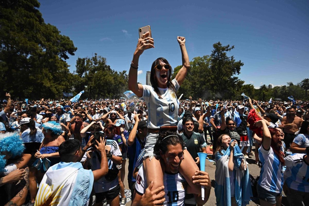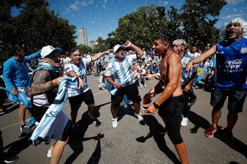 وامتلأ 9 دي خوليو، أوسع شارع في العالم، حيث تقع المسلة، وهي نقطة التقاء منتظمة للاحتفالات خلال مونديال قطر 2022، بأشخاص يرتدون قمصانا وأعلاما وطنية بينما كانوا يغنون ويطلقون أصوات أبواق السيارات للاحتفال.