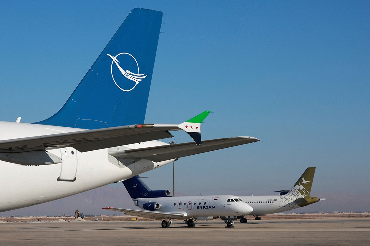 والإثنين، رسم موظفو المطار على طائرات تابعة لشركة «أجنحة الشام» الخاصة، علم استقلال سورية عام 1946 الذي كان رمز الحراك الشعبي في العام 2011 ضد بشار الأسد والذي تبنته السلطات الجديدة.
