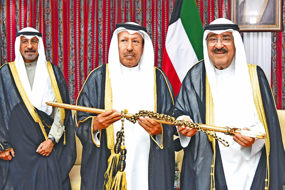 وفي صبيحة 8 أكتوبر عام 2020، أدى سمو الشيخ مشعل الأحمد اليمين الدستورية أمام سمو الأمير الراحل، وأعقب ذلك جلسة خاصة عقدها مجلس الأمة بهذه المناسبة، بايع خلالها أعضاء المجلس بإجماع الحضور (البالغ عددهم 59 عضواً) سمو الشيخ مشعل الأحمد ولياً للعهد، حيث أدى سموه اليمين الدستورية أمام المجلس.