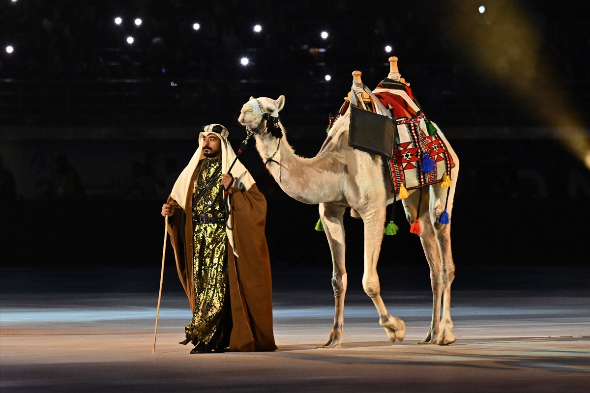 وشمل حفل الافتتاح تجسيداً لحياة أهل الكويت والخليج في الماضي، مستعرضاً علاقتهم بالبحر الذي شكل مصدر رزق للآباء والأجداد وربطه بالماضي وحياة الصحراء ورمزها الجمل في بانوراما جميلة أبرزت شعار البطولة «المستقبل خليجي».