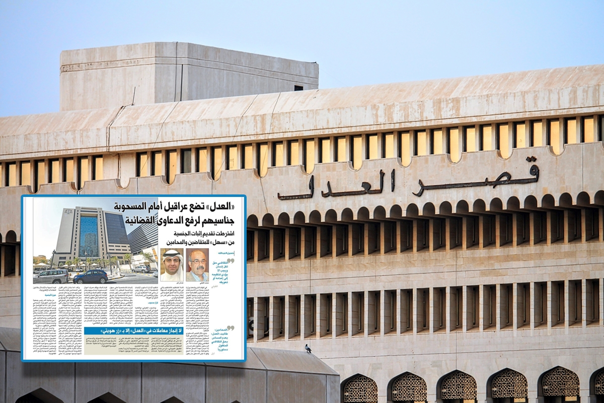 تفاعلاً مع خبر «الجريدة» بعنوان («العدل» تضع عراقيل أمام المسحوبة جناسيهم لرفع الدعاوى القضائية)، ألغت وزارة العدل التعميم الذي أصدرته قبل نحو أسبوعين باشتراط استخراج شهادة الجنسية من تطبيق سهل للمحامين والمتقاضين.