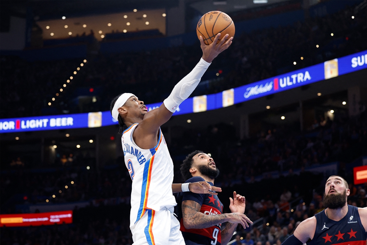 فاز كل من أوكلاهوما سيتي ثاندر متصدر المنطقة الغربية وكليفلاند كافالييرز متصدر الشرقية على واشنطن ويزاردز 123 - 105، ويوتا جاز 124 - 113 توالياً، أمس، في دوري كرة السلة الأميركي للمحترفين، في حين تعرض كل من بوسطن سلتيكس حامل اللقب ولوس أنجلس ليكرز للخسارة.