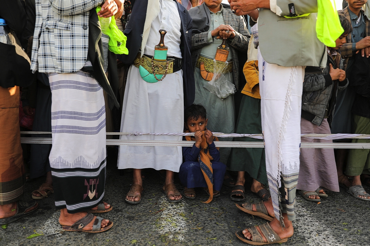 وفي تظاهرة الجمعة، رفع مشاركون العلمَين اليمني والفلسطيني، بينما لوّحوا بالخنجر التقليدي اليمني.