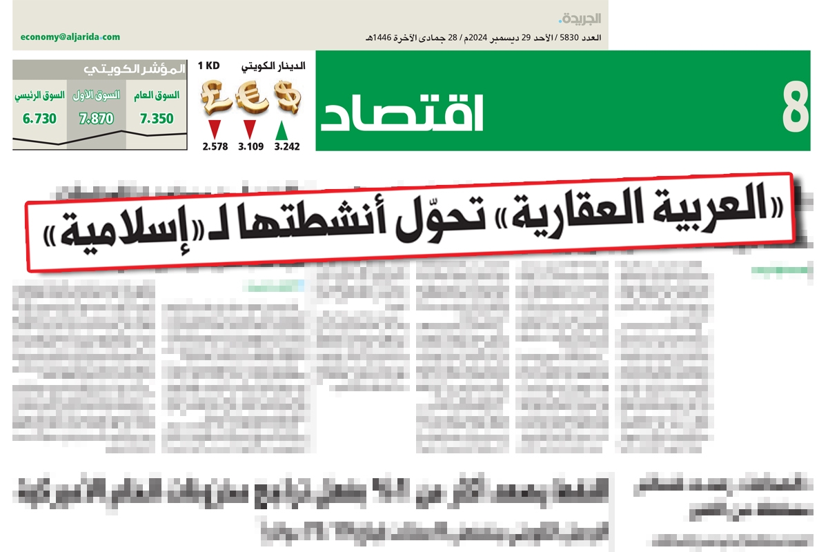 تأكيداً لما ذكرته «الجريدة» في عددها، أمس الأحد، قال نائب رئيس مجلس الإدارة الرئيس التنفيذي للشركة العربية العقارية د. عبدالله معرفي، إن أحد الخيارات المتاحة أمام الشركة، ضمن مشروع الهيكلة المستمر منذ عملية زيادة رأس المال، هو تحويل ديونها إلى البنوك الإسلامية، بالتالي تحويل الشركة إلى كيان متوافق حسب أحكام الشريعة الإسلامية.