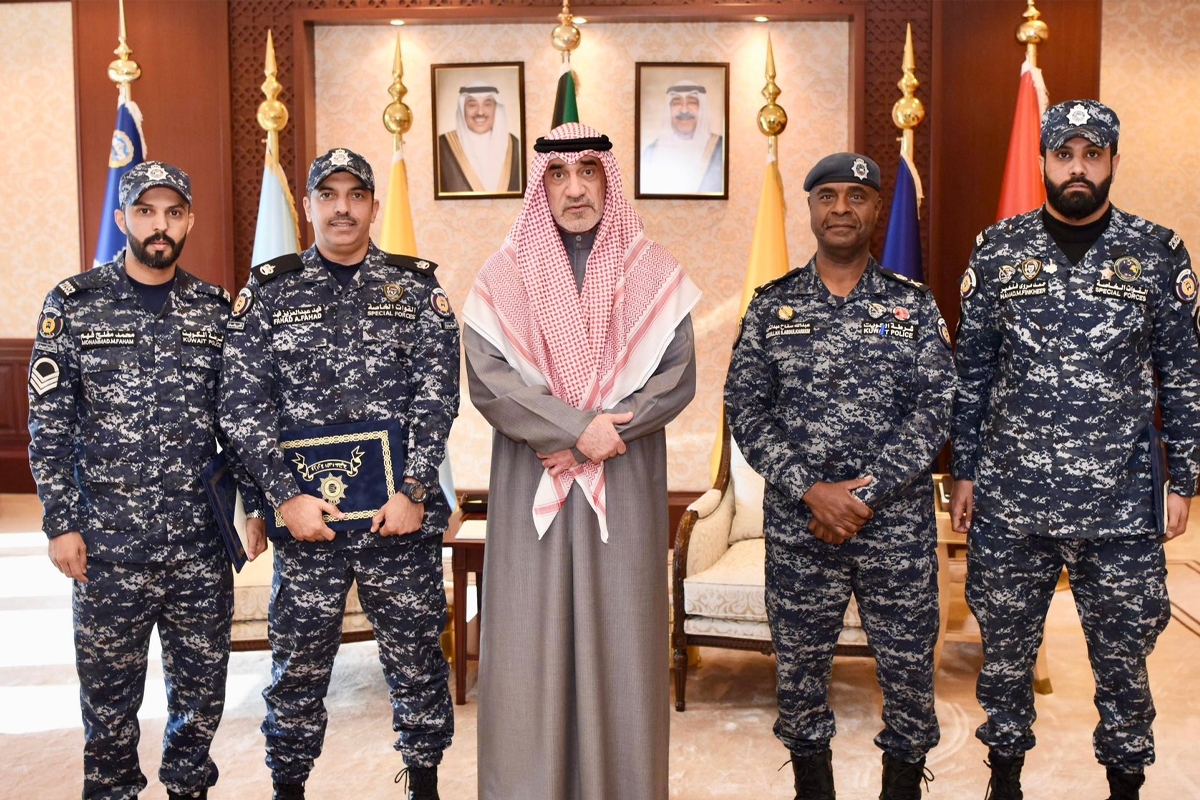 كرّم النائب الأول لرئيس مجلس الوزراء ووزير الدفاع ووزير الداخلية الشيخ فهد اليوسف اليوم الأحد في قصر السيف الرائد فهد النويصر والرقيب أول حمد العنزي والرقيب أول محمد النومسي من مرتبات الإدارة العامة لقوات الأمن الخاصة تقديراً لجهودهم المخلصة في تعزيز القيم الإنسانية وتقديم الدعم والعون للجمهور خلال مباريات «خليجي 26».