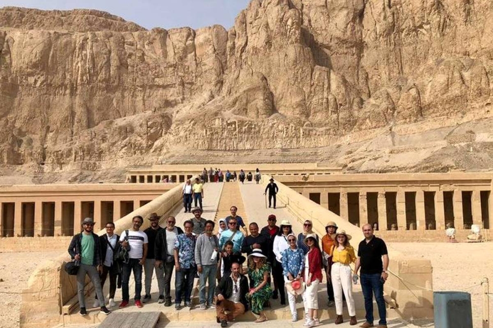 ويجول موكارجي، في كل صباح، بين معابد الفراعنة ومعالم البر الغربي، وعلى ضفاف نهر النيل الخالد، بصحبة الفنانين المشاركين في الملتقي، حيث يزورون معالم قرية حسن فتحي التراثية، ومراسم الأقصر القديمة في فندق المرسم التاريخي، ومعابد الكرنك والأقصر وهابو وحتشبسوت ومقابر ملوك ونبلاء الفراعنة في جبانة طيبة القديمة بالقرنة، ومعالم معبد دندرة.