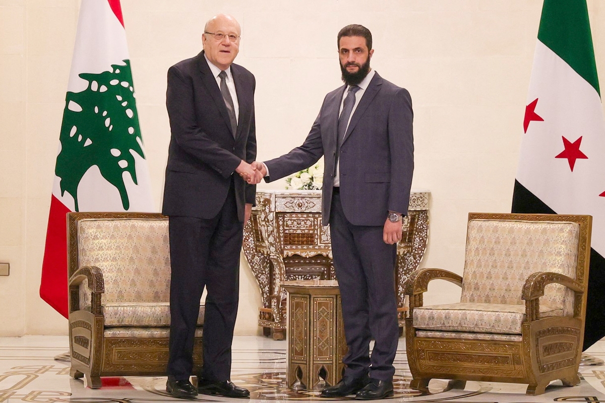 ووسط تأكيد من الجانبين على ضرورة فتح صفحة جديدة بين بيروت ودمشق بعد انتهاء نظام الأسد، وبناء علاقات استراتيجية على أسس «سليمة وقوية»، قال ميقاتي خلال مؤتمر صحافي مشترك مع الشرع إن لبنان وسورية سيتعاونان في تأمين الحدود البرية ومتابعة ترسيم الحدود البرية والبحرية بين البلدين.