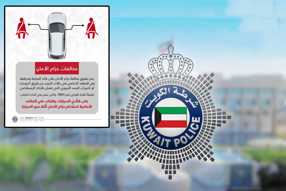 وأضاف العيسى، في تصريح لـ «الجريدة»، أن وزارة الداخلية ذكرت، في منشور على منصة إكس، أن منظومة كاميرات الرصد الآلي، التي قامت الوزارة بتركيبها أخيراً، تعمل بتقنية الذكاء الاصطناعي، وستقوم برصد مخالفتَي عدم ربط حزام الأمان لقائد المركبة ومن يجلس بجواره، واستخدام الهاتف باليد أثناء القيادة.