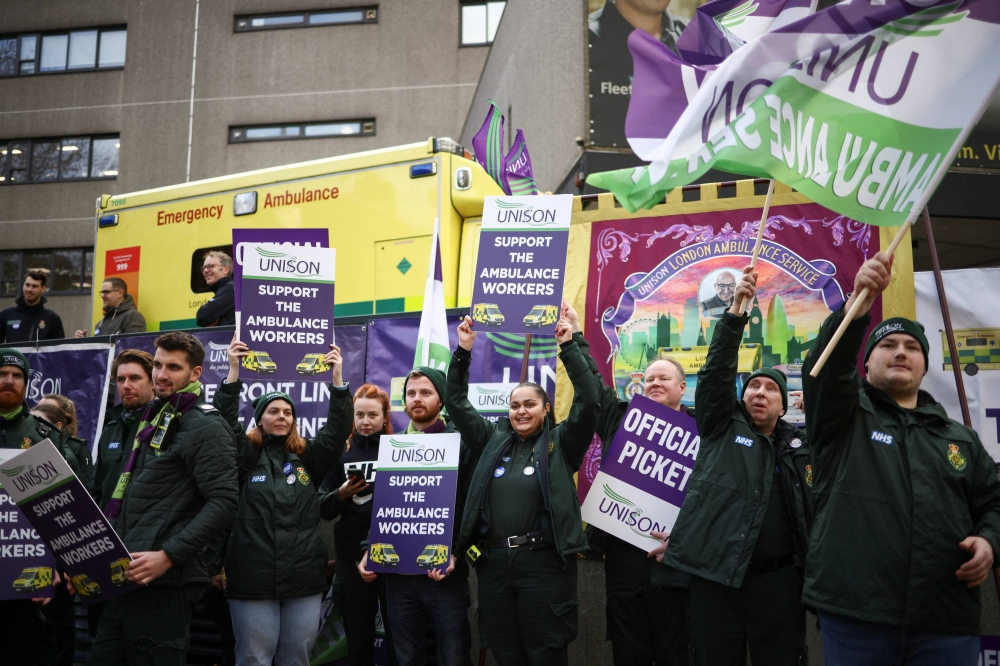 شارك الآلاف من العاملين بخدمة الإسعاف في إنجلترا وويلز اليوم الأربعاء في إضراب للمطالبة بزيادة الأجور، مما يزيد الضغط على هيئة الخدمات الصحية الممولة من الدولة، بعد يوم من دخول أطقم التمريض في إضراب.