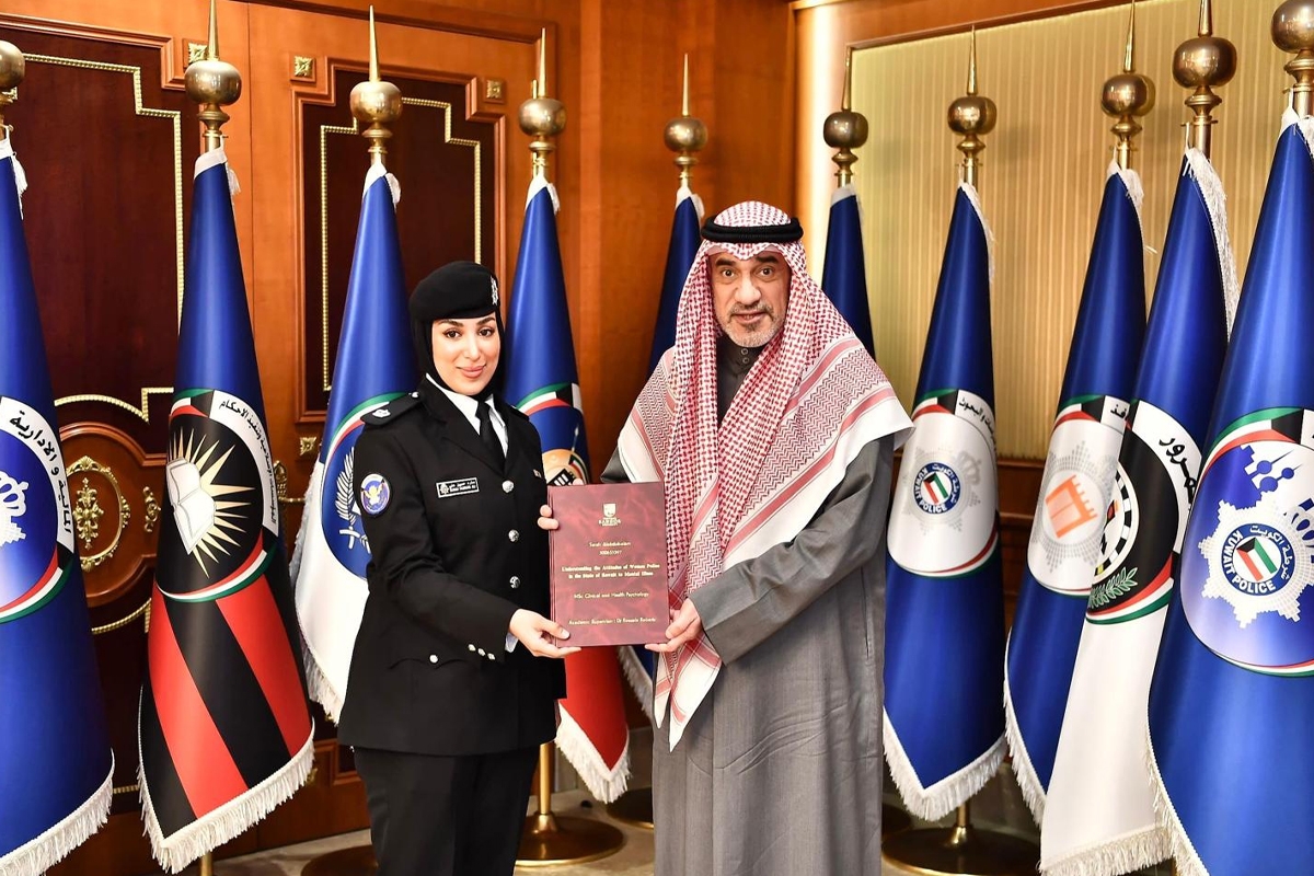 من جانبها، عبّرت الرائد ساره حسين العبدالسلام عن شكرها وتقديرها للشيخ فهد اليوسف على دعمه وتشجيعه للبحث الأكاديمي، مؤكدة أن هذا الاهتمام يعكس حرص الوزارة على رفع كفاءة الشرطة النسائية وتعزيز أدائها المهني والعلمي.