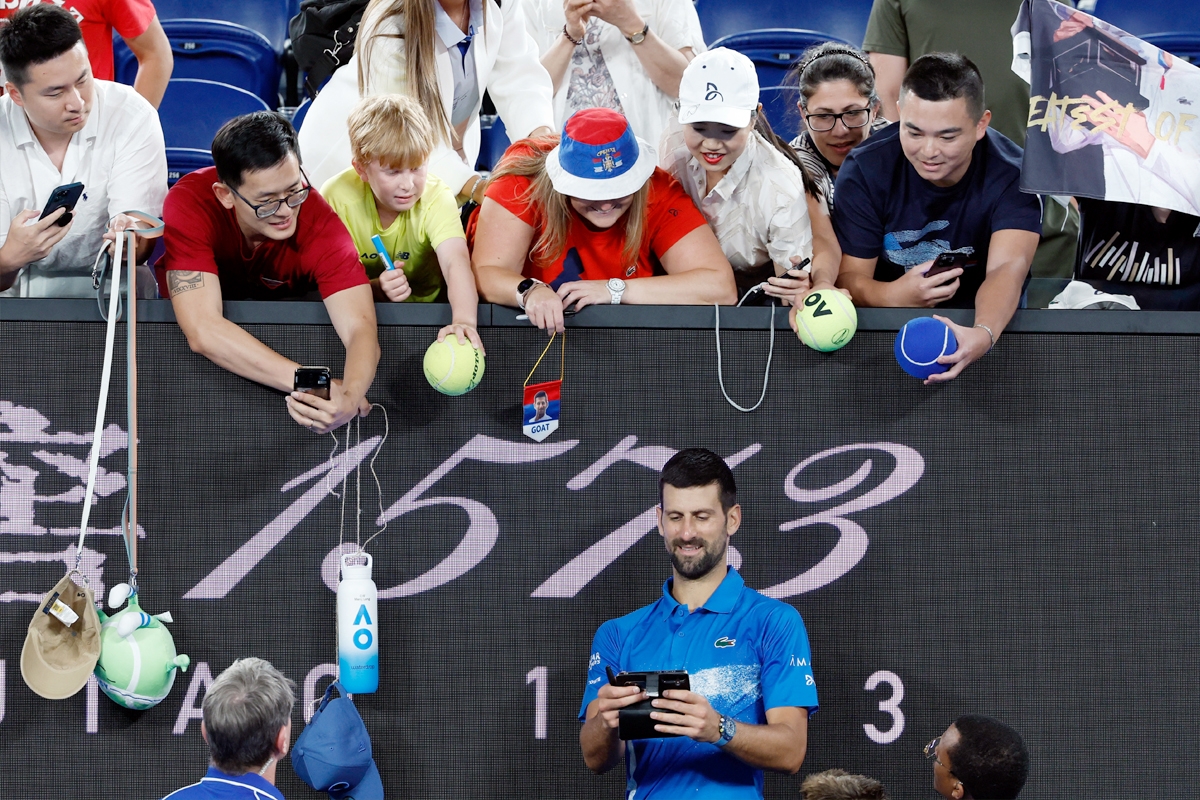 استعاد الصربي نوفاك ديوكوفيتش، المصنف السابع عالمياً، توازنه، بعد خسارة مجموعة للمباراة الثانية توالياً، ليبلغ الدور الثالث من بطولة أستراليا المفتوحة، أولى البطولات الأربع الكبرى في كرة المضرب، محطماً في الوقت ذاته الرقم القياسي للسويسري روجيه فيدرر، بخوض أكبر عدد من المباريات في منافسات الفردي بالبطولات الكبرى (غراند سلام).